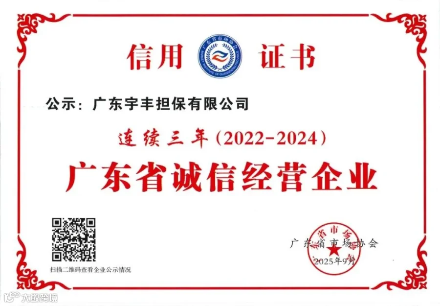 热烈庆祝广东宇丰担保有限公司连续四年(2021—2024)荣获
