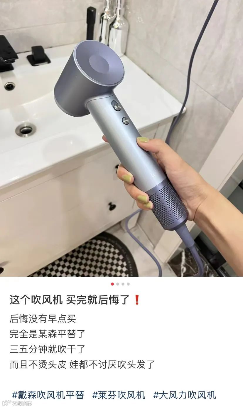 徕芬就是其中一个迅速杀入高速吹风机市场的品牌,其早期的打法就是将自己包装成“戴森平替”,凭借这个营销套路,徕芬直接切入消费者痛点,迅速吸引消费者注意,并且从社交媒体等短视频平台入手,发布关于“性价比、黑科技”、“平替版戴森”、“平价国产产品打败戴森”之类的大标题或关键字,在消费者群体中刷足存在感。