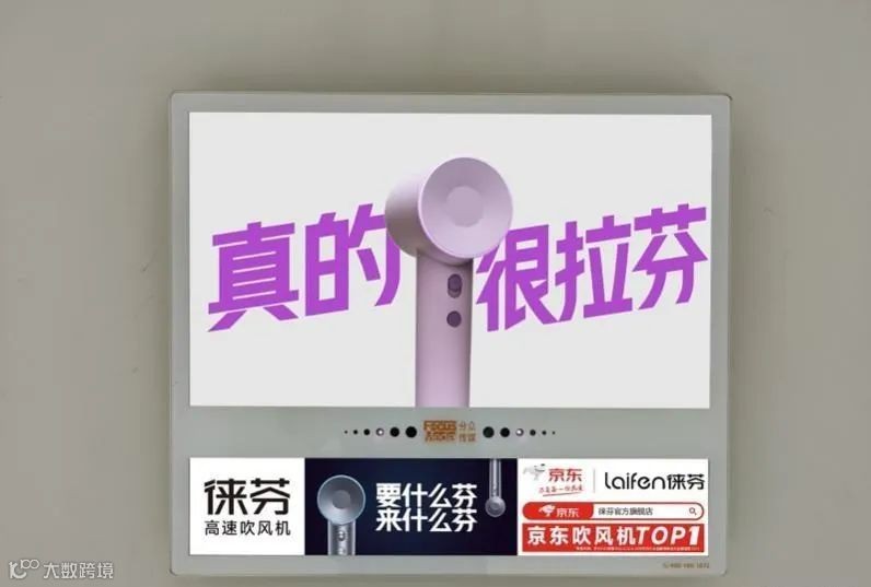 除此之外,徕芬还选择在线下各大商场、写字楼等地投放广告,全面接触各种消费者,更是以谐音梗“明星都是吹出来的”等搞笑广告词,不断突破人群圈层,深刻植入品牌印象。