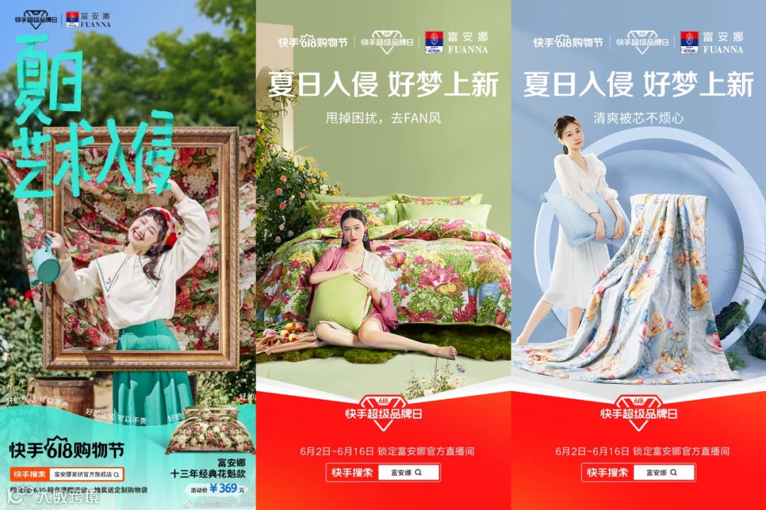 在洞察到现代人普遍具有的精神内耗、职场内卷高压情绪影响了睡眠、摧毁了身体这一现象后,富安娜聚焦当下睡眠的“困”和“扰”,与快手电商联合策划了#夏日入侵 主题活动,通过线上线下联动,逐步传递消费者“好睡眠选富安娜”的品牌印象。
