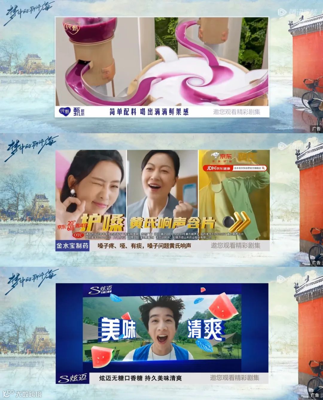 基于广告主的新植入诉求,视频平台也在创新“硬件”,以趣味化、贴合性的互动玩法打开更多的营销空间。例如腾讯视频定制的“氛围贴”绑定剧中心动名场面,拉动用户的观剧情绪,比“如意贴”更具氛围感,点击率也更高;优酷推出的硬广“破屏”样式,以3D的形式突出呈现产品特点,强视觉冲击下也让观众留下深刻印象。
