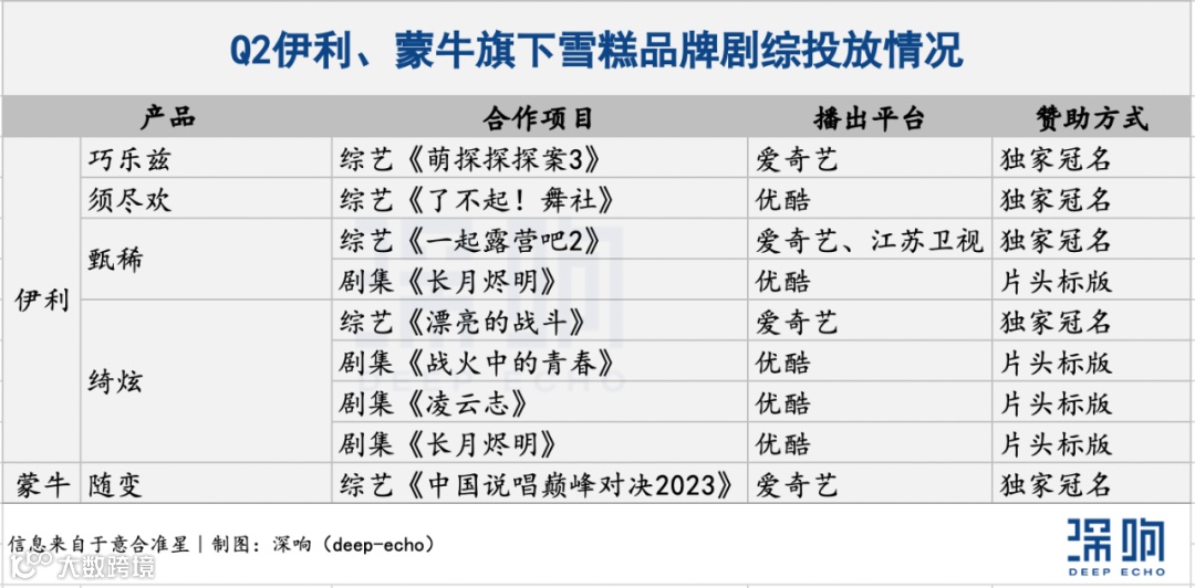 综艺冠名由伊利、蒙牛牢牢把占,和路雪则“避其锋芒”主攻大剧,几乎包揽了Q2热播的所有剧集。