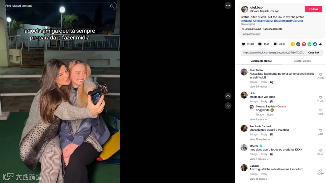 在TikTok的品牌标签#Ulanzi下可以看出,在TikTok的红人营销策略与在YouTube上的打法有所不同。它更注重与多元类型的达人合作,不仅限于科技领域,还包括时尚、生活方式等内容创作者,借此扩大品牌在不同圈层的曝光与影响力。