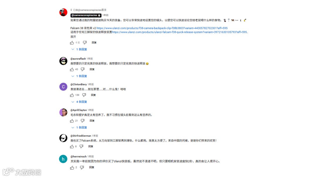YouTube上专业摄影博主的粉丝通常粘性强、忠诚度高,这与Ulanzi目标用户的特点相符,也让这些粉丝更容易转化为品牌的忠实用户。
