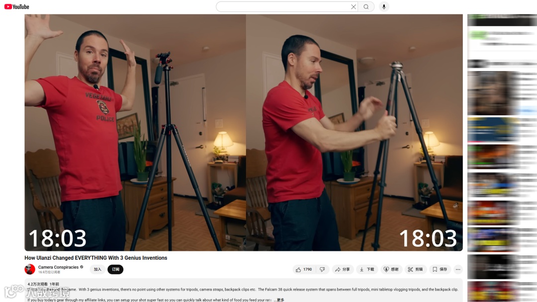 以摄影博主Camera Conspiracies为例,他是一位拥有16.9万订阅的YouTube博主,他的频道内容以各种相机、镜头或摄影技巧分享为主,与Ulanzi的产品重叠度很高。