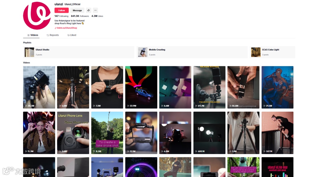 同时随着海外短视频的兴起,Ulanzi自然也不会放过TikTok这个平台,Ulanzi在TikTok上收获有84万+的订阅。