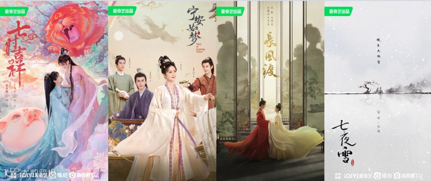 除了风格厚重的古装传奇类型,在爱奇艺的古装IP中,我们还能找到九鹭非香、时镜、墨书白、滕萍、沧月、辰东、老猪、十四郎等热门网文作家的名字,由他们小说而改编成的剧集,既包含了《七时吉祥》《宁安如梦》《长风渡》《七夜雪》《念无双》等这类女频言情向的作品,也包含了《遮天》《紫川》等这类热血男频向的作品,琳琅满目,品类多元。