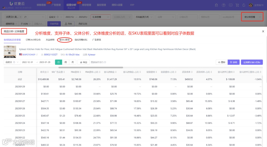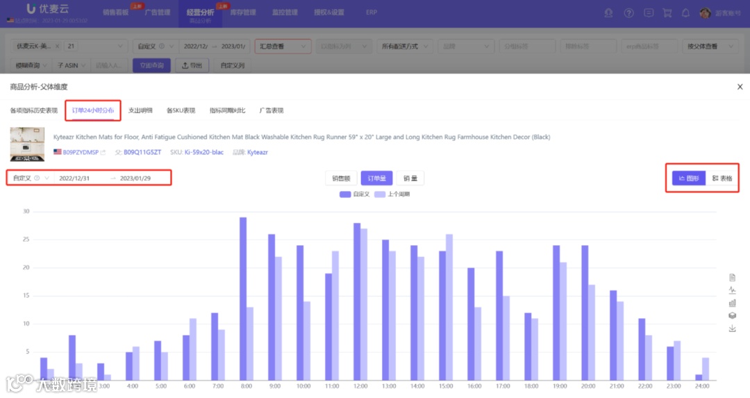 新方法更加直观,大家可以直接在优麦云的“分析维度”按照子体和父体进行查看,24小时订单分布时间更长,数据更多,分析更高效,查看路径如下图所示: