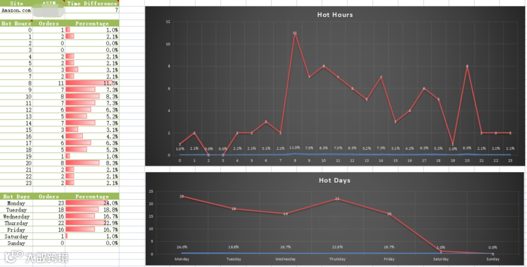 那么,我们应该如何从更深层次的地方来剖析自己的亚马逊订单数据,从而得出有效的订单时刻高峰期以及历史表现呢?