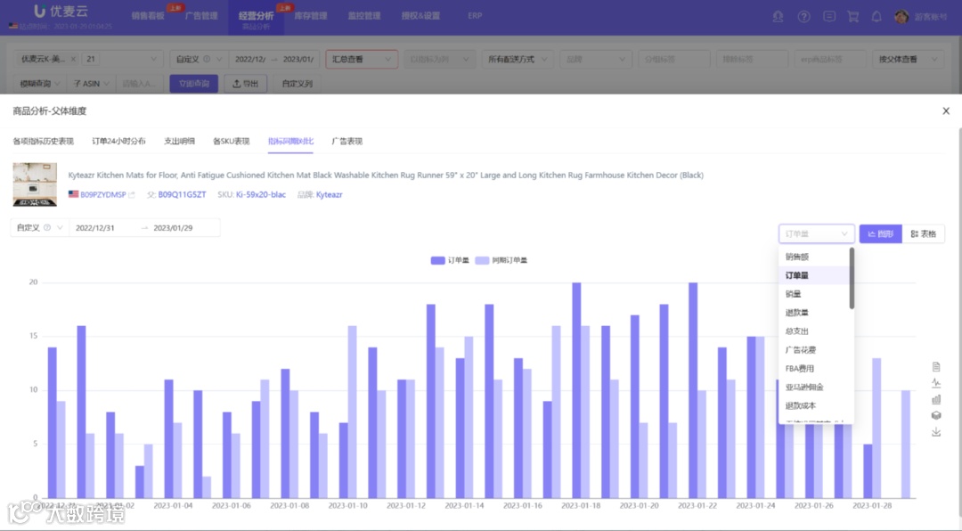 另外,除了订单量的高峰期可以进行同期对比,其他指标,例如:退款量,总支出,广告花费,销售额等都可以进行同期对比,以此来得出相应的结论。这里就不一一举例了。