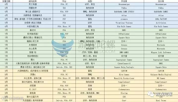注: 下半年预期发售游戏因受游戏公司跳票或未公布影响,为游戏陀螺不完全统计。数据显示,2017全年预计发售146款新作。
