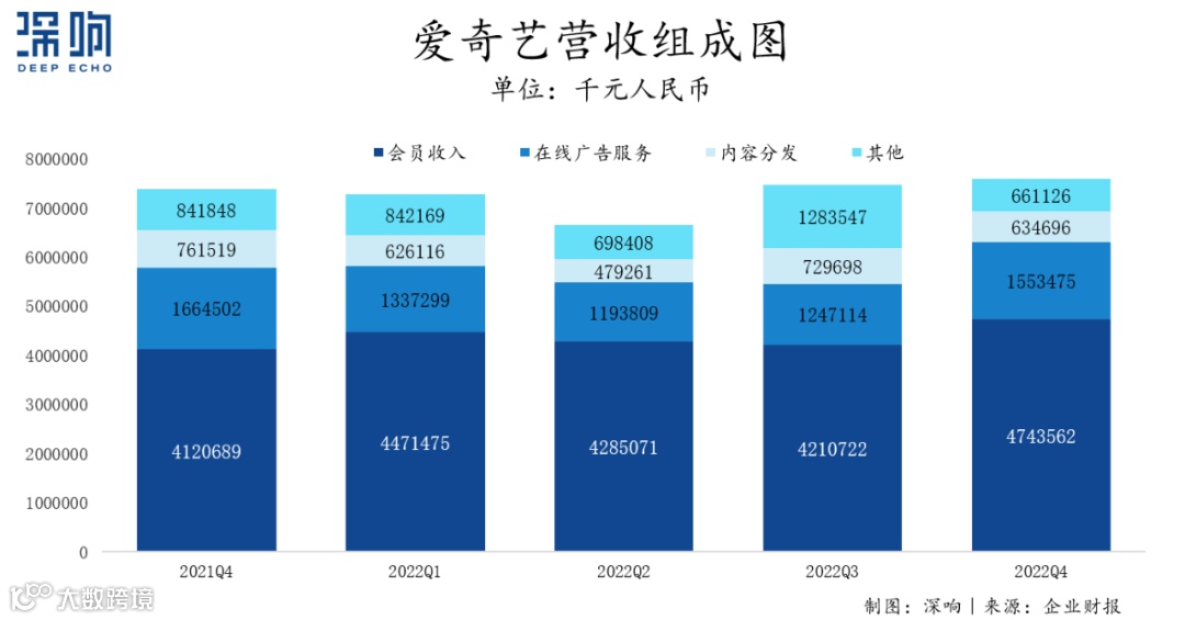 内容品质提升,观众自然用脚投票。财报显示,截至2022年12月31日,爱奇艺会员规模已达到1.2亿,单季净增超1300万;同时在各类优质内容和持续推出的多项会员福利之下,月度平均单会员收入(ARM)也有所提升。订阅数和ARM值的双向带动下,会员收入带活了全盘,2022年Q4爱奇艺会员收入为47亿元,创历史单季新高,2022全年会员收入177亿元,营收占比超60%。