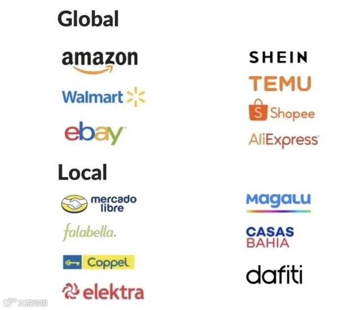 拉美电商市场格局的最大特点是多平台并存。既有全球布局的电商巨头如亚马逊、ebay、沃尔玛等,也有本地用户基础强大的平台如美客多、Magalu、Falabella等,还有SHEIN、AliExpress、Temu等亚洲新秀电商平台强势进入,带来低价、丰富的商品选择,推动了整体电商生态的成熟发展。