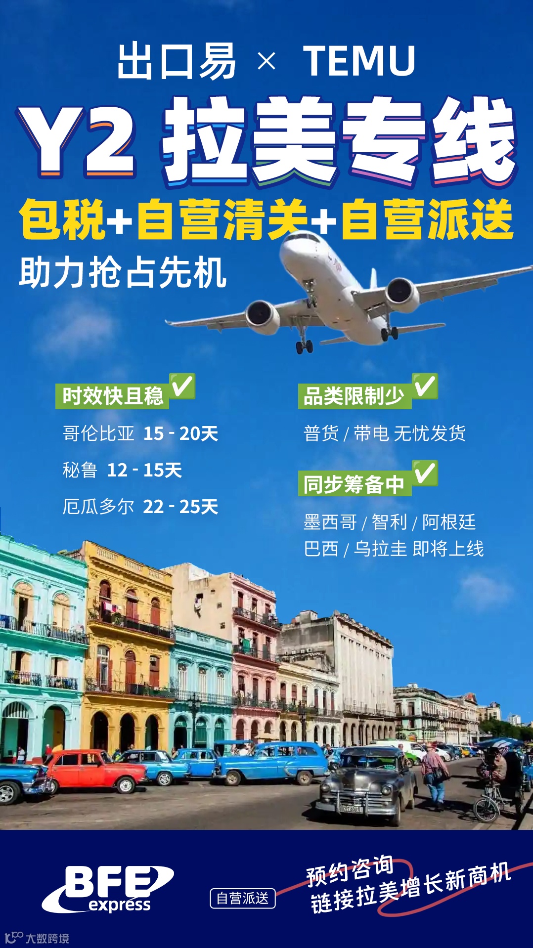 出口易将持续关注拉美市场最新动态,不断优化我们的物流解决方案,为跨境卖家提供更加高效、便捷的物流服务,助力各位卖家在拉美蓝海市场中破浪前行!