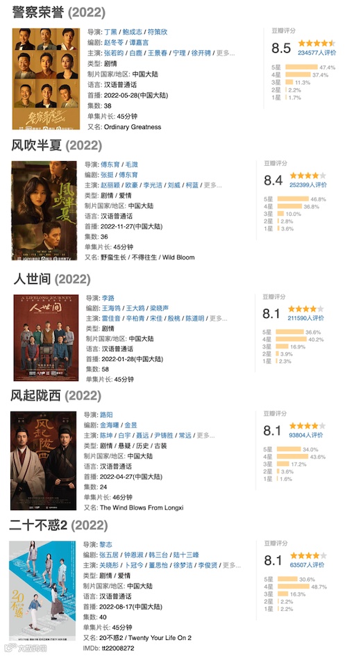 剧集层面,平台今年收获了5部豆瓣评分超8分的口碑剧集,全年多阶段持续为观众和市场带来惊喜。开年《猎罪图鉴》的热播验证了小众题材也有出圈的可能;暑期《苍兰决》引发全民“上头”,带动古装市场回温;年末《风吹半夏》燃动时代情绪,创现实题材高光。金鹰颁奖典礼上,百姓生活史诗《人世间》众望所归实现大丰收。综艺层面,走过五年的《中国说唱巅峰对决》仍具有旺盛生命力,以18.57%的全端播放市占率成为暑期综艺冠军;当下正在热播的《元音大冒险》也贡献了音综竞演的新玩法。