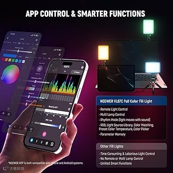 Neewer还引入了智能家居品类中创新的软件管理技术,开发了Neewer App来管理配件平台。通过这个App,用户可以轻松完成手机与智能硬件的快速交互,全自动控制Neewer的灯光和拍摄设备。