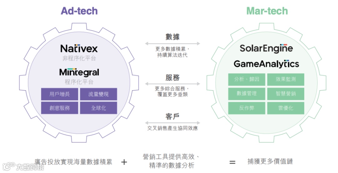 拓展能力边界,主要在于Adtech+Martech双轮驱动的布局。