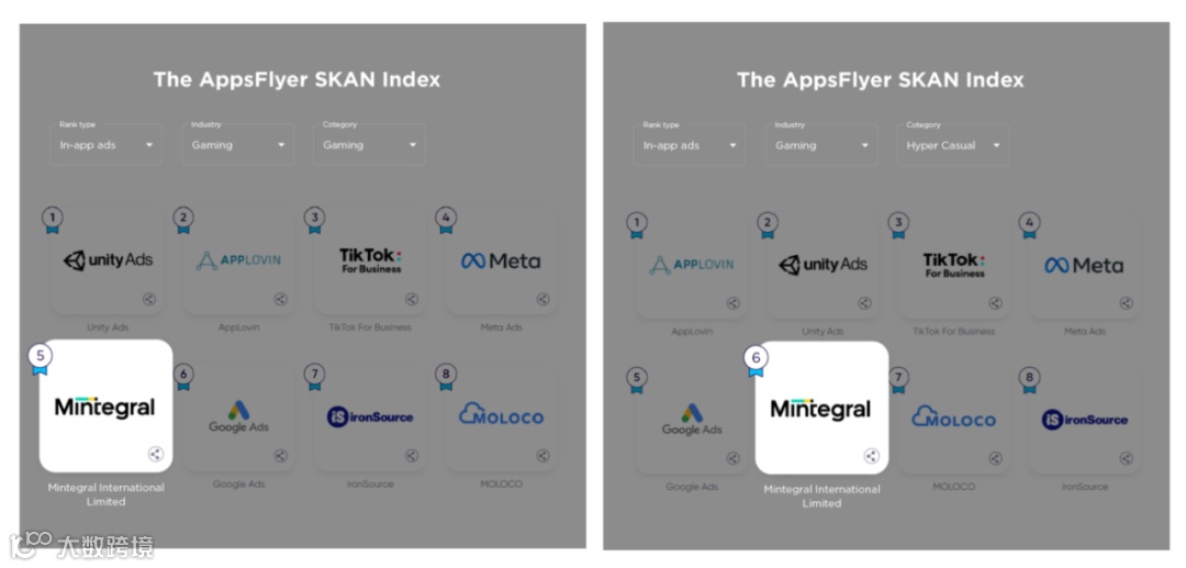 事实上,此前Mintegral也多次在几大榜单的前列,此次排名的再一次提升,是其逐渐稳固自身优势壁垒。登入SKAN指数榜,也得益于Mintegral较早就接入了SKAdNetwork解决方案,从而赢得了更长的时间窗口来适应行业变化并做好准备。