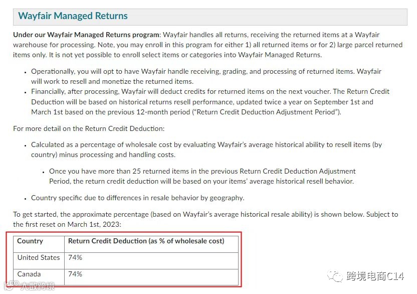 有的新账号一开始就是纳入的Wayfair退货政策,有卖家已经分享出来的比率是74%,也就是按照base cost的26%和你结算