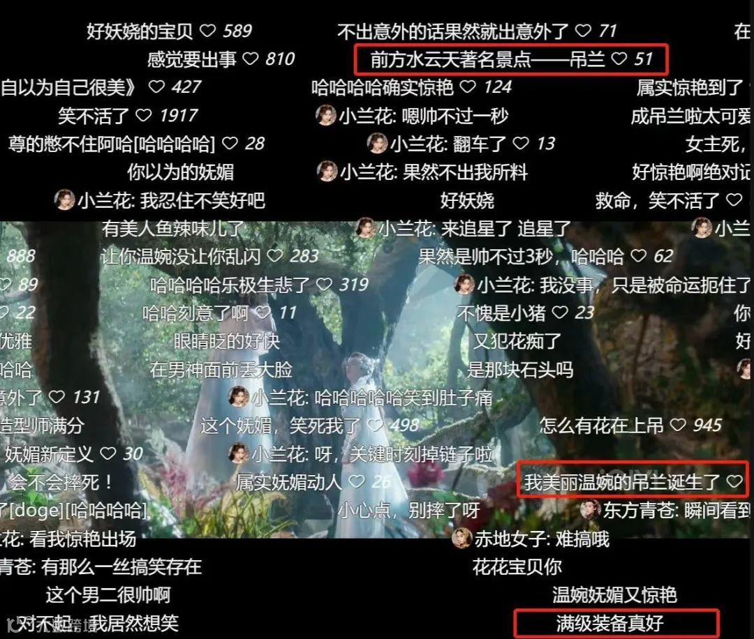 爱奇艺恋恋剧场的《苍兰诀》,引发了年轻人到熟龄观众的集体“上头”。剧粉们拿着放大镜追剧,梳理隐藏的草蛇灰线,或者在弹幕区中造梗互动,例如剧中有一幕是小兰花的脖子被树枝卡住,弹幕出现“原来这就是吊兰”;面对东方青苍的霸总式宠妻,观众发表了“东方大强惯兰高手”的评论。影视剧与现实相结合,多元情境叠加趣味效果也帮助了剧集的传播破圈。