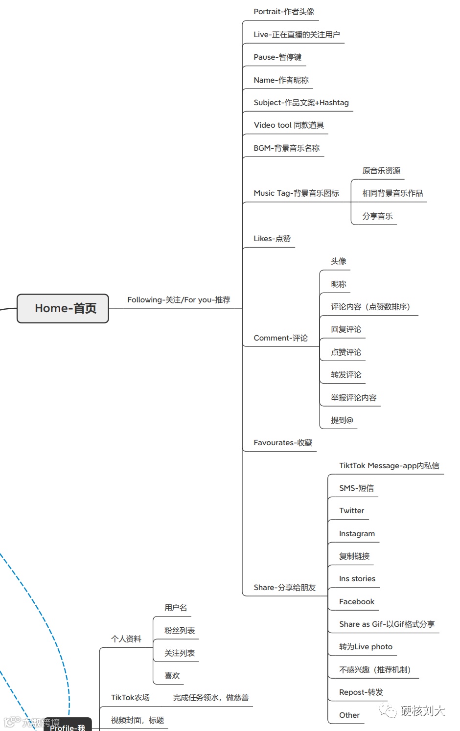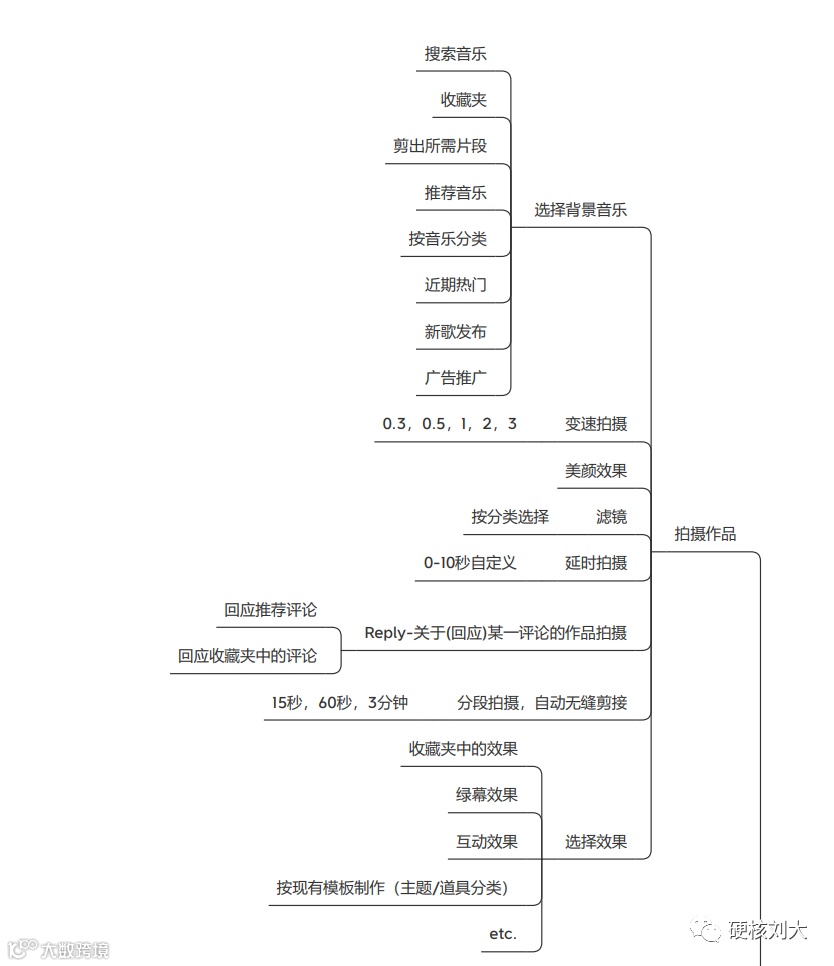 创作者注释,音乐原声等视频基本信息都在底端显示无论是分享,社交,介绍,查看音乐,自己创作,所有内容基本可以在首页找到,这也符合用户操作简单,功能路径短的需求。