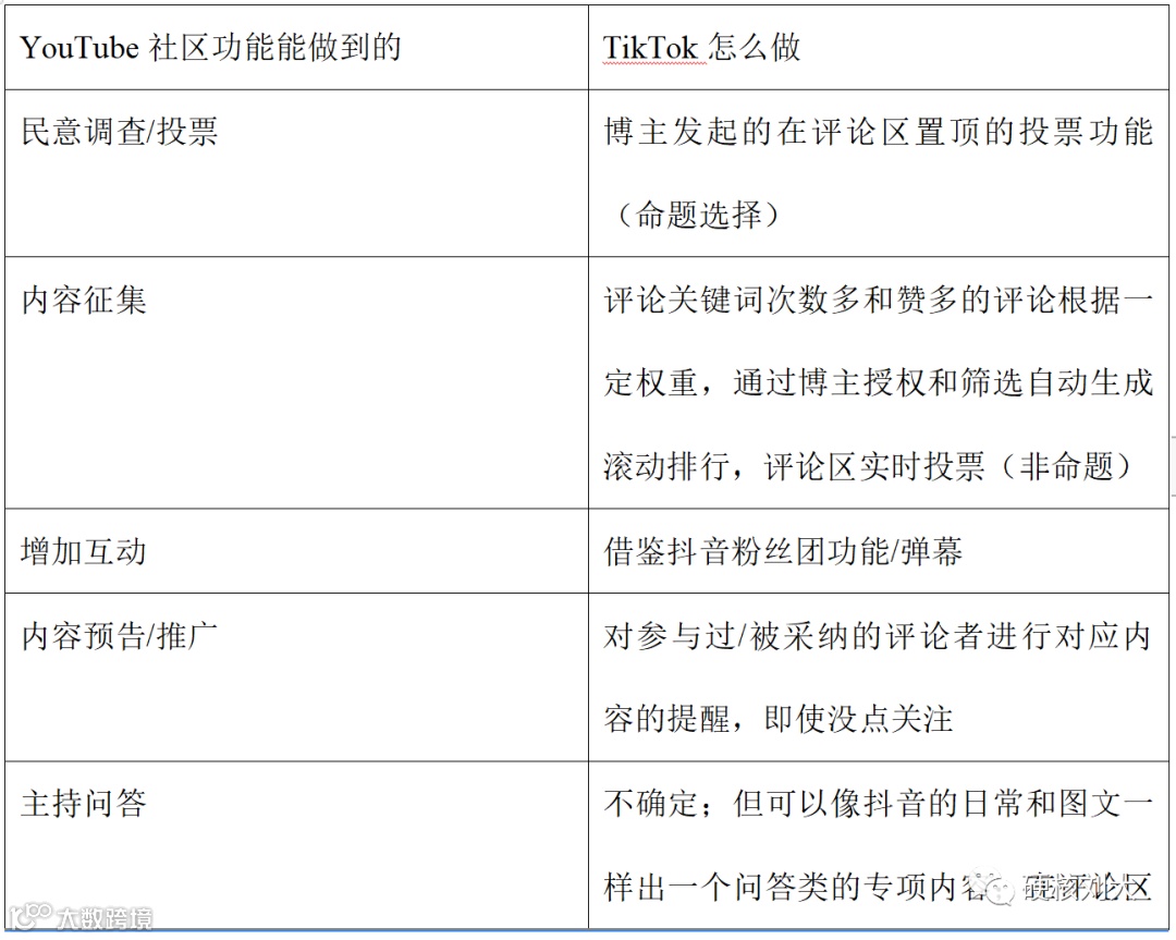 分析目的是参考YouTube的社区功能,TikTok发展社区文化的可能性有哪些。
