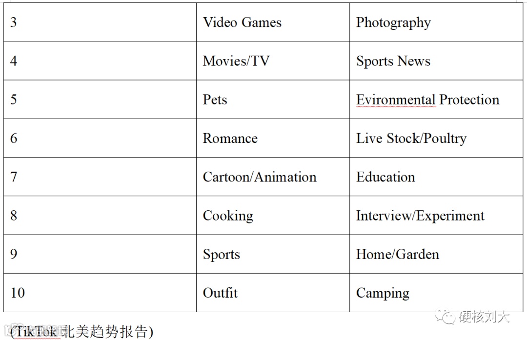 再看视频种类偏好,运动,游戏,音乐类视频占比都很大;TikTok增长最快类别里面依然有音乐类。