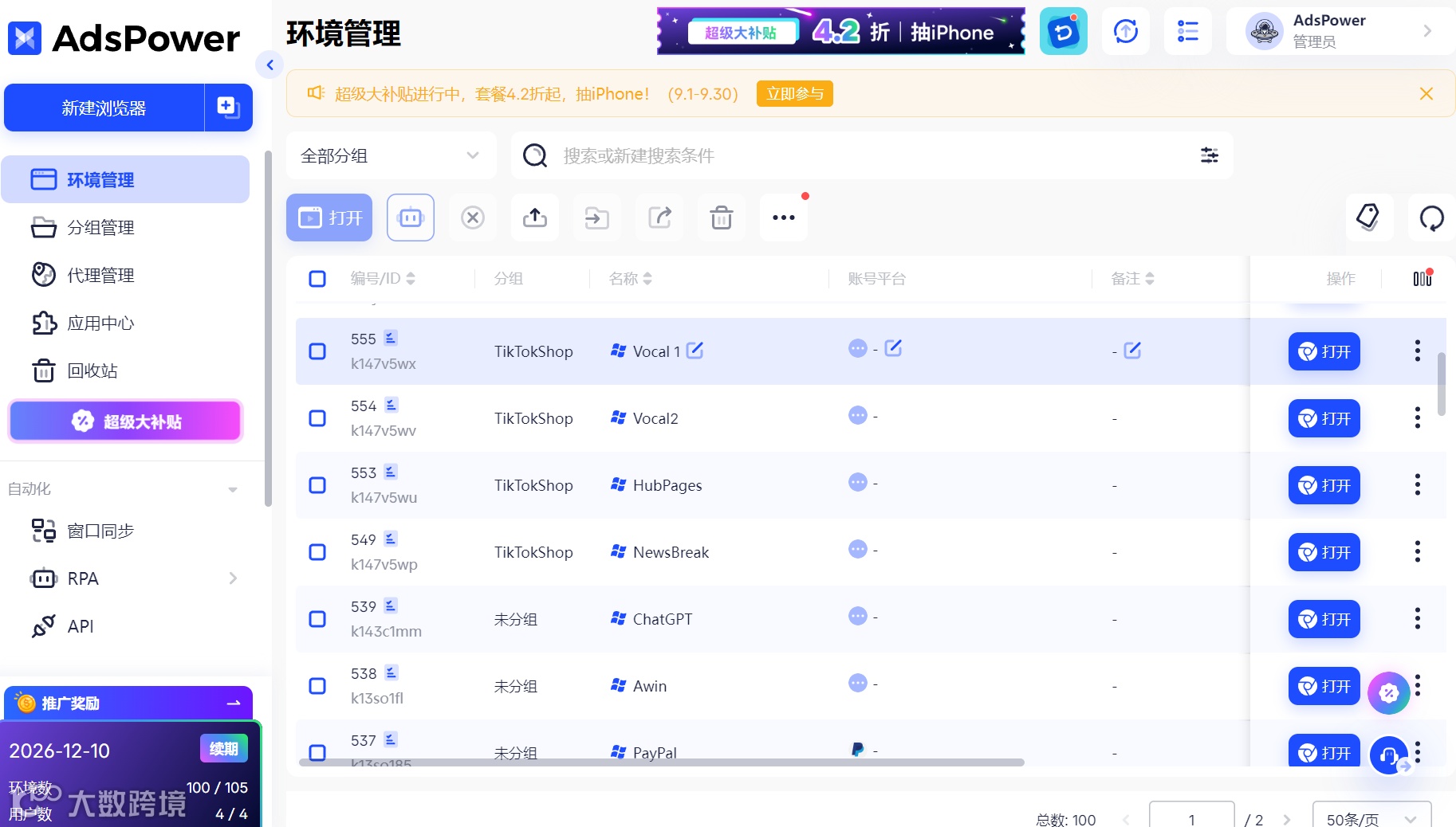 这时候,AdsPower 指纹浏览器就是核心解决方案: