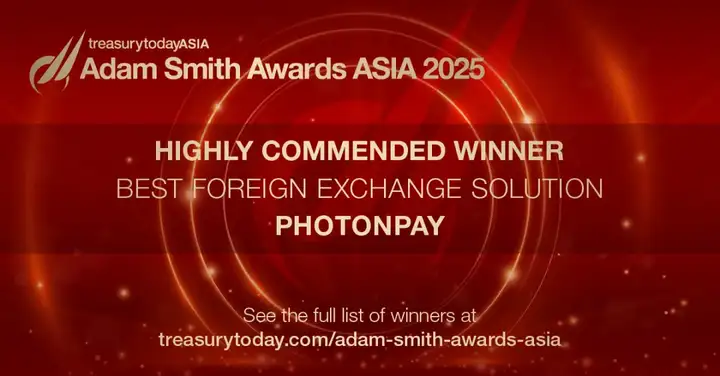 9月17日,英国知名财经杂志《今日资金管理》(Treasury Today)正式揭晓2025年度亚洲区亚当·斯密奖(Adam Smith Awards Asia)获奖名单,PhotonPay光子易从众多国际参赛案例中脱颖而出,荣获“最佳外汇解决方案”(Best Foreign Exchange Solution)推荐奖。这一国际权威奖项的获得,不仅体现了评审委员会对PhotonPay光子易在外汇管理与全球支付领域技术实力的高度认可,也标志着公司在全球金融科技创新道路上迈出了坚实一步。