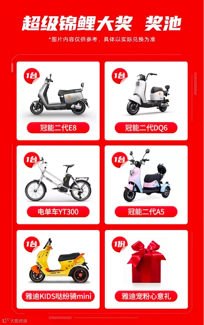 从短片、挑战赛,再到线下的热销,整个链路之所以能如此顺畅地完成,不得不提的还有“雅迪锦鲤大奖”活动。