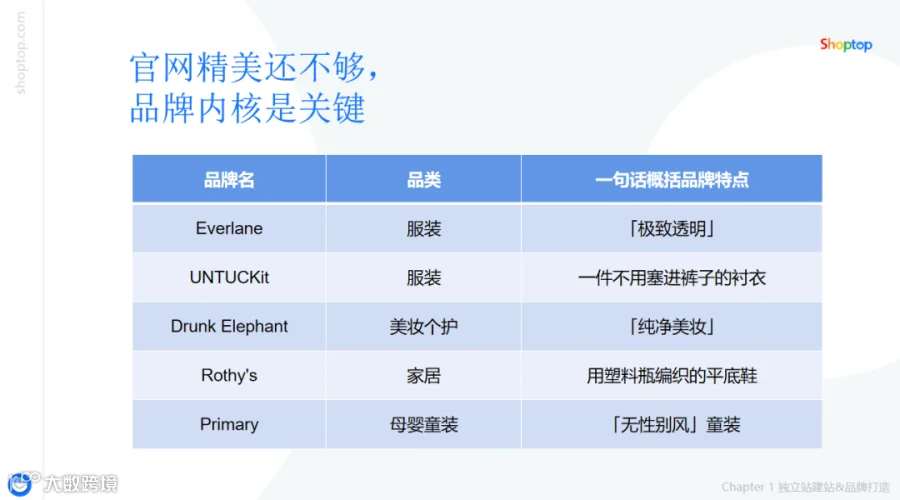 Shoptop独立站品牌出海专家Jair,在《DTC标杆品牌打造策略——从建站到营销快速落地》直播分享中曾提到,“官网精美还不够,品牌内核是关键。”