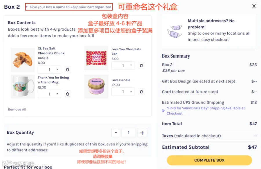 同时,每件商品都标明了价格,这意味着发件人可以准确把握礼盒预算。