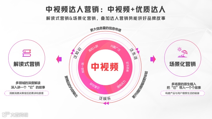 于广告主而言,丰富的达人资源意味着选择的空间更广,中视频这一载体在商业化方面又有着独特的价值,比如更完整的画幅、更深度的讲解、更丰富的场景等。所以当前西瓜视频达人营销分为两种营销模式,一是解读式营销,多维度多领域深度解析消费决策背后的需求,帮助消费者理性种草;二是场景化种草,通过不同生活场景下的原生植入,让品牌融入更自然。