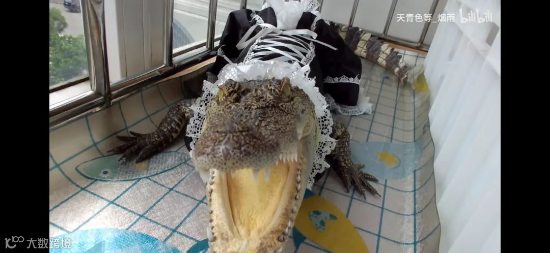 “龙女仆的叫声你听过吗?”在B站Up主“天青色等_烟雨”发布的一条视频中,一只家养的宠物小鳄鱼穿上了女仆装,凶猛地张开大嘴,发出了令人意外的软萌叫声。这一极具反差感的视频目前在B站播放量近600万,评论数达1.1万。