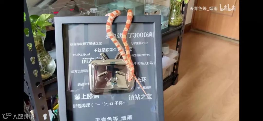 从2019年8月开始,该Up主持续更新着家养暹罗鳄的成长日常,包括他如何给鳄鱼洗澡、穿搭、喂食小白鼠或章鱼等。其视频中的另一个主角是爱吃活鼠的宠物蛇,今年10月,当Up主收到来自B站的十万粉纪念小电视牌时,还特意拍摄了小蛇与奖牌同框的视频。