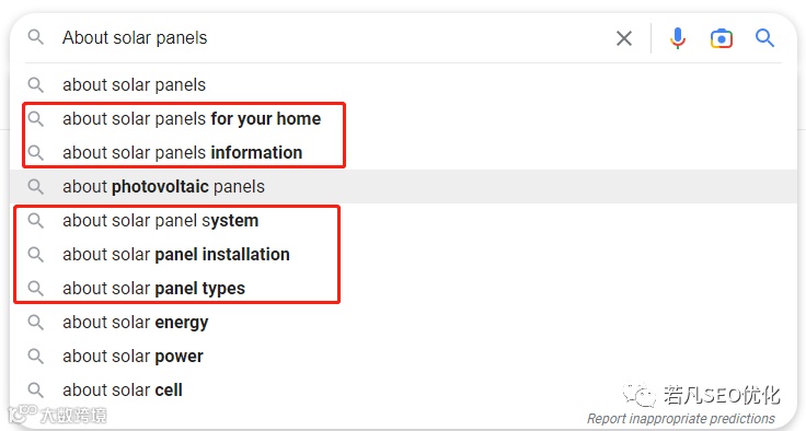 比如我们要写一篇 “solar panels“为主题的文章,可以直接在Google 搜索关键词 “About solar panels”