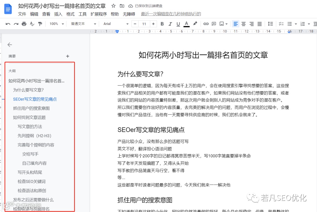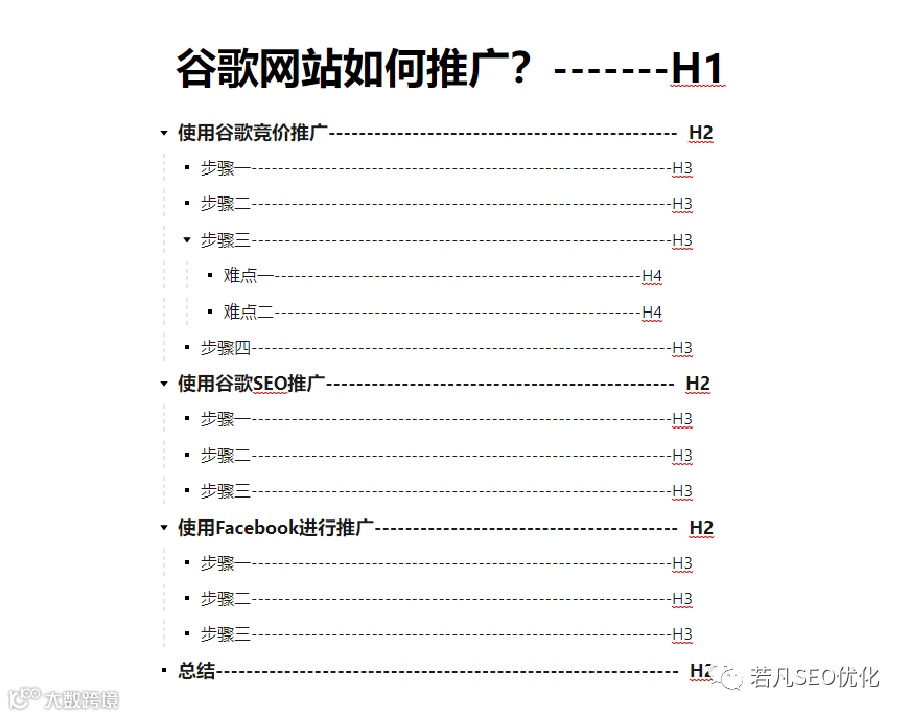 再比如我要去写一篇“谷歌网站如何推广”的话题,那么我也会先把提纲定好,比如: