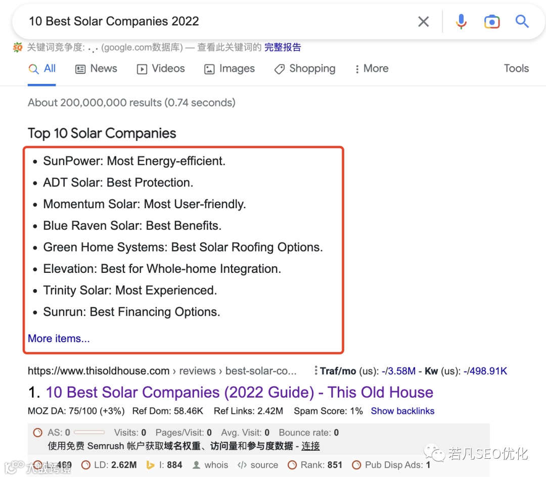 主副标题的标记还有竞争第0名精选摘要的作用,精选摘要分为段落型摘要和列表型摘要,他们分别以下面的形式出现。