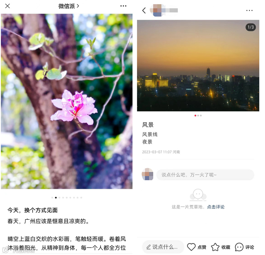 微信发布标题为《今天,换个方式见面》的图片消息,向用户展示新的排版模式——左右滑动即可查看详情,图片下方可以赘述文字。这个模式太过眼熟,被网友戏称微信要变“小绿书”。