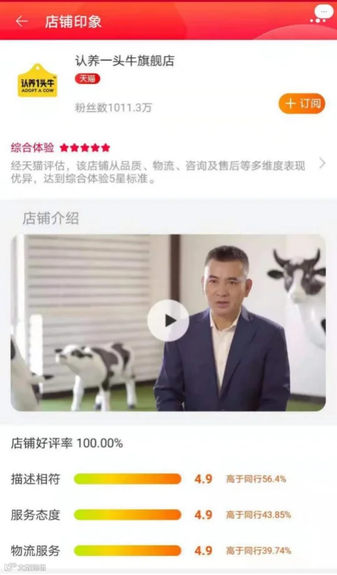 2016年10月,认养一头牛在杭州正式创立,并通过布局线上和新零售渠道快速奔跑。今年5月底,这家新锐乳业品牌的天猫旗舰店粉丝数突破了1000万,会员超过330万。在天猫大食品类目中,认养一头牛是继三只松鼠、良品铺子和百草味后,第四家粉丝突破千万量级的品牌。而在2020年,认养一头牛就已成为天猫、京东平台品牌旗舰店中,销量最高的乳制品行业品牌。