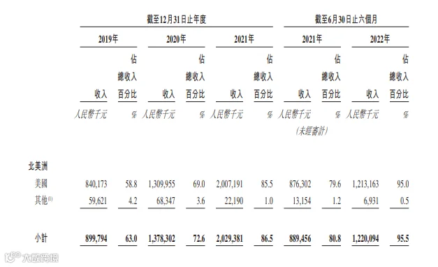 而美国是子不语最大的市场,子不语所公示的按客户地理位置划分的收入明细表显示,2019年—2021年及2022年前六个月,在美国的收入占子不语总收入的比例分别为58.8%、69%、85.5%和95%。