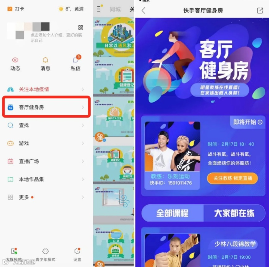 疫情期间,快手就曾专门划分出了健身内容专区“客厅健身房”,集中直播内容和系列课程,为一大批健身类KOL带来了实现爆发性增长的红利。据快手官方数据,在过去一年,每天有1800万人互动点赞健身视频,超2000万人观看健身直播。