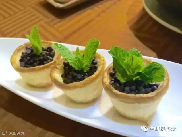 盆栽蛋挞:造型独特,巧克力豆点缀于滑嫩蛋液之上,别具风味。
