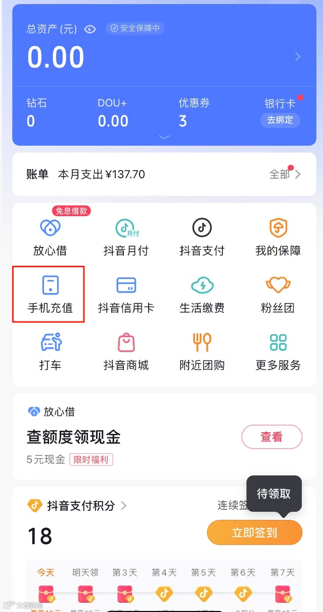 如果没看到“钱包”或“手机充值”,可能是您还没做实名认证(上传身份证照片)。按提示完成认证后即可显示。