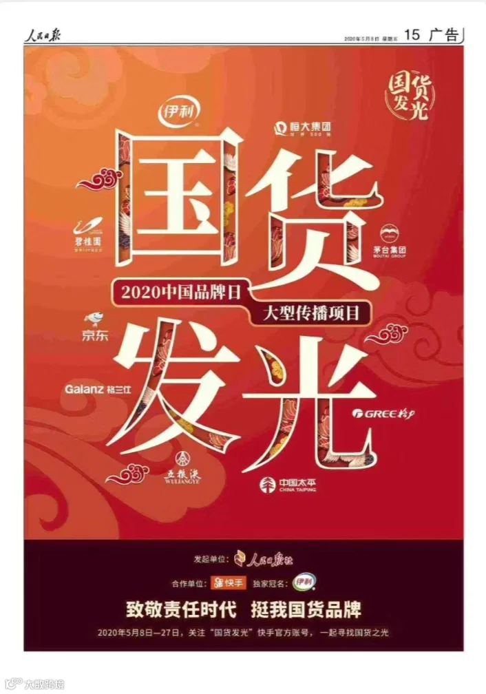 主流媒体更是不遗余力地为“国货复兴”造势。5月8日,人民日报整版刊登了“国货发光”的活动广告,力度罕见。此外,人民日报还与快手平台达成了长期合作,除了参与国货专场直播以外,还准备联手推出国货相关的挑战赛、联名产品、短视频主题活动,持续加码。