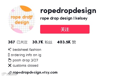 虽然目前 ropedropdesigns 的规模并不算很大,看得出是个人运营的生意,品类仅面向女性群体,入驻的电商平台也有限,但作为 Kelsey 独特的竞争力,个性化和创意化的手工设计为其在 TikTok 博得了不少关注和粉丝。卖家们也可从这门生意中提炼出可借鉴的地方。