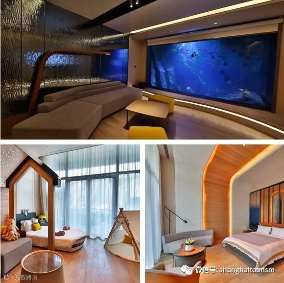 - 水下部分:包含特色客房与水下餐厅,入住水下套房宛如置身水族馆之中,更有复式家庭套房设计。