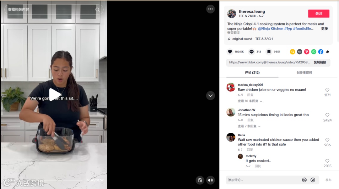 TikTok上theresa.leung与达人theresa.leung合作的视频仅用8个步骤展示户外烤炉功能,点赞数达18.05万,播放量可观,带来难以估量的转化率。
