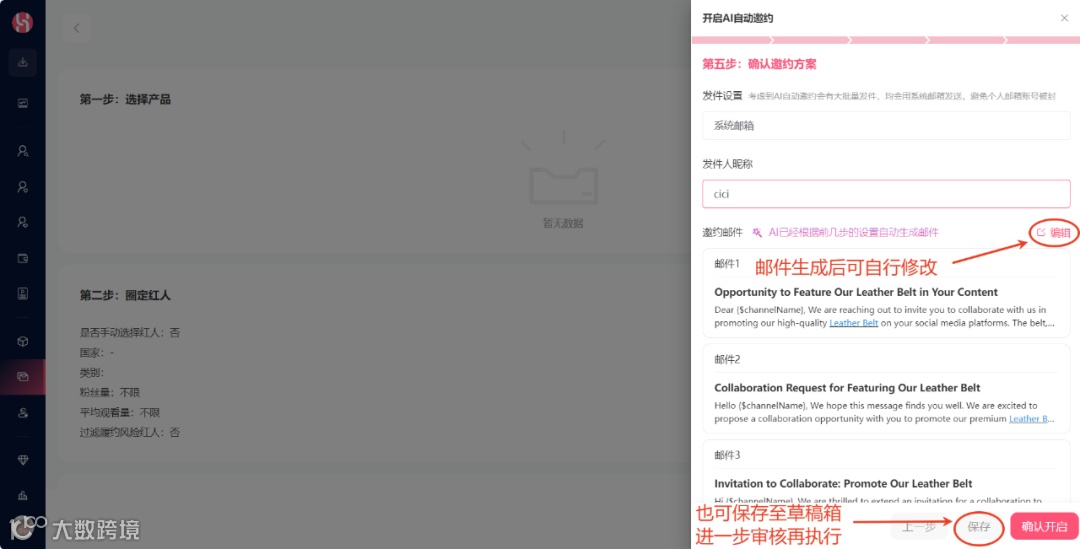 高效沟通机制: 支持批量发送邀请、AI生成邀约邮件、内置沟通模板,大幅缩短联络周期;沟通记录集中展示,跟进状态清晰透明。