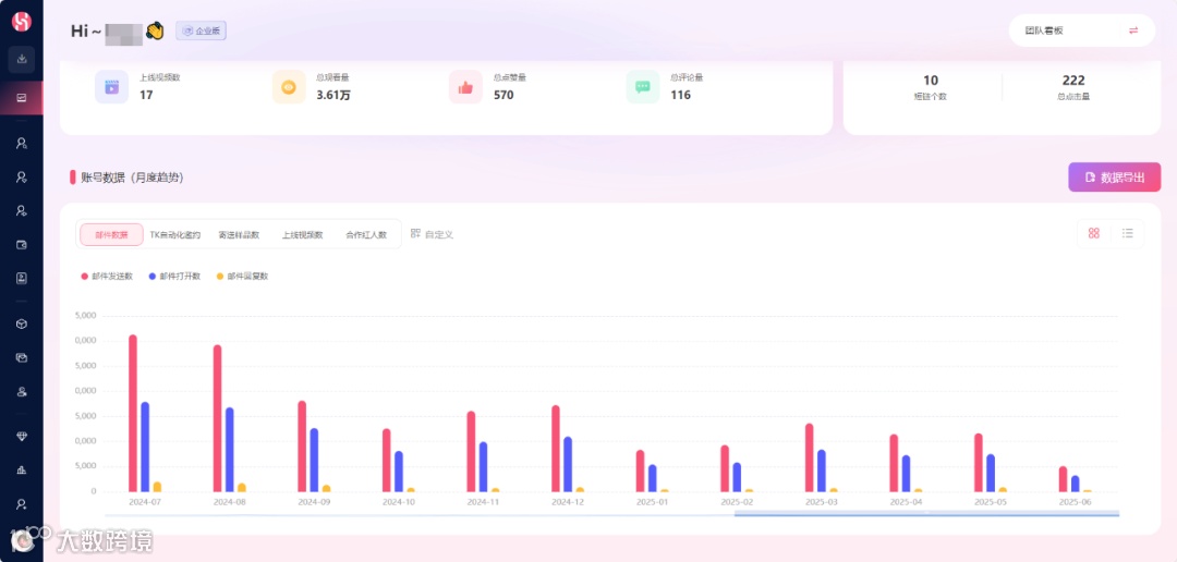 实时效果追踪: 提供推广链接追踪、点击转化、社交互动、销售归因等全流程数据,自动化整合后台呈现。